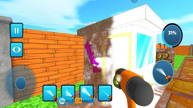 3、玩家能够自由搭配各类清洁工具,提升配件性能,构建专属清洁装备库,不同的装备组合会带来独特的清洁效果和视觉呈现。1、借助多点触控功能完成精细化操作:单指滑动可操控清洁方向,双指缩放能调节水压大小,从而针对各类污渍选用最具成效的清洁方案。