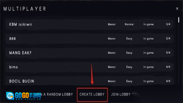 3. 我们和好友联机时,选择【CREATELOBBY】来创建房间就可以了。