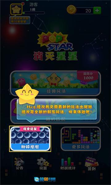 全新版消灭星星为玩家提供了多种游戏模式,其中包含粉碎泡泡模式。