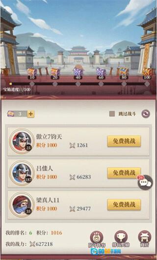 每次参与挑战都能获得一份随机奖励,奖励内容包括铜钱、武将经验、演武币、武灵丹等。