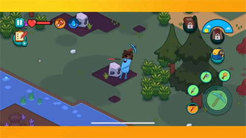 4、玩家在游戏里的核心目标是在野外生存下来,只需操控角色移动并触碰到材料,就能自动完成收集操作。