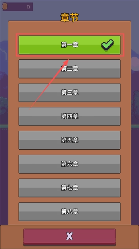 4、想挑战不同关卡时,可以点击章节按钮,那里能选择从第一章到第八章的关卡,已解锁的章节会显示绿色对勾标记。