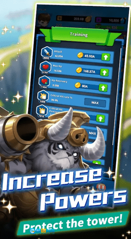 塔的升级与强化机制:玩家可通过完成各类任务、击败怪物等途径获取经验值与特殊材料,以此对塔进行升级操作。升级后的塔不仅攻击与防御能力会得到显著提升,还能解锁全新的功能模块与技能选项。比如,当塔升级至特定等级时,便能够释放覆盖范围更广的魔法攻击,或是为玩家提供额外的属性加成。此外,玩家也可利用特殊材料对塔进行强化,像嵌入魔法宝石这类方式,就能针对性地增强塔的某项特定能力。 英雄的养成与搭配策略:塔上配置的三名英雄各自拥有独特的技能体系与属性特点。玩家可以通过收集英雄碎片、完成英雄专属任务等方式,逐步提升英雄的等级并强化其各项能力。不同类型的英雄适配不同的战斗场景:例如近战英雄在怪物逼近时能发挥显著效果,远程魔法英雄则可对远距离的怪物造成高额伤害。玩家需要依据怪物的特性以及具体战斗需求,合理搭配英雄阵容参与战斗,从而制定出最优的战斗策略。
