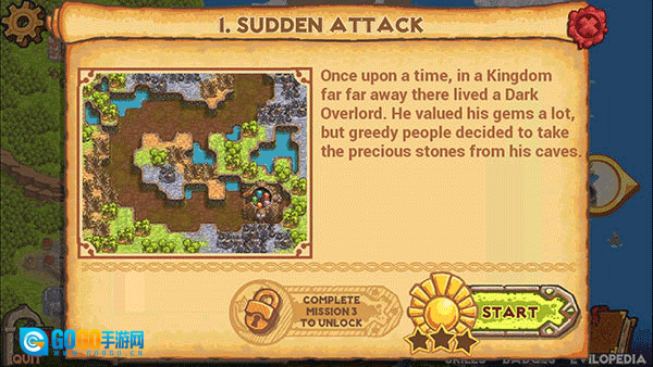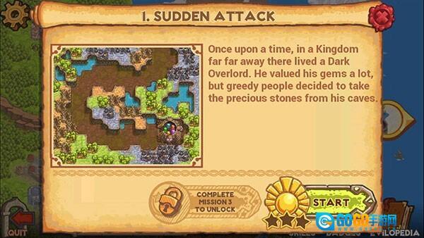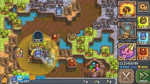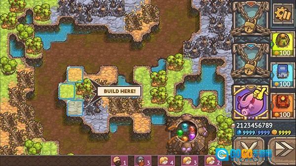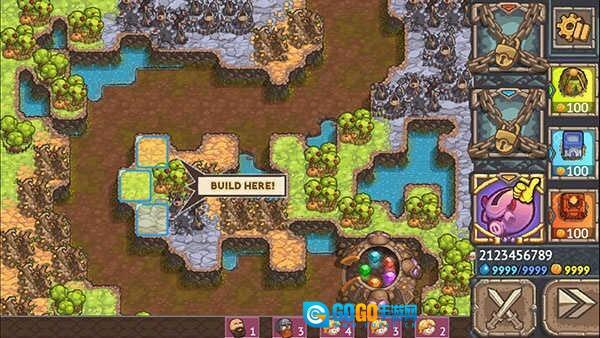 1、这是一款卡通风格的塔防游戏,背景设定在藏有一堆宝藏的山上,众多觊觎者对宝藏虎视眈眈。而你作为宝藏的守护者,需要借助塔防的方式来阻拦敌人,防止他们夺走宝石。