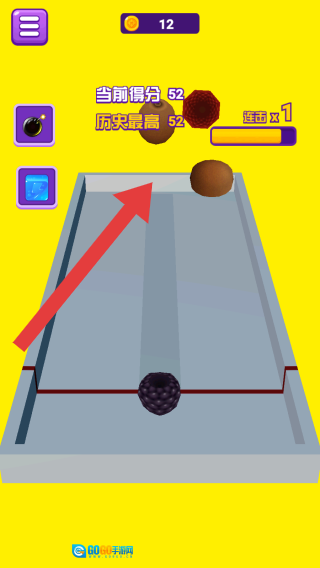 3、游戏元素方面,当显示“连击×1”时意味着处于连击状态,轨道上分布着黑色、棕色、红色等不同颜色的球形物体,这些都是可互动的对象。