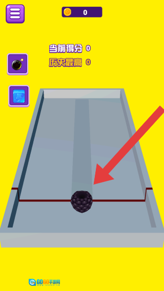 2、游戏元素:画面中央的黑色球形物体是游戏的主角或关键道具,它位于轨道场景内,玩家需依据提示来滚动物品。