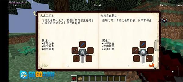1. 首先拔刀剑MOD能够与暮色、神秘、竹、推进等几个大型MOD产生关联,合成刀的基础是无名刀木偶,所有可合成的刀都是由木偶逐步进化而来的。
