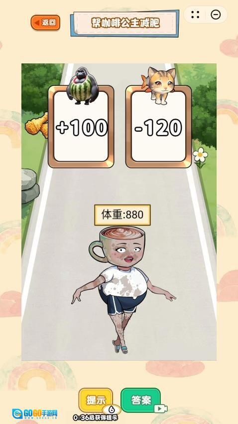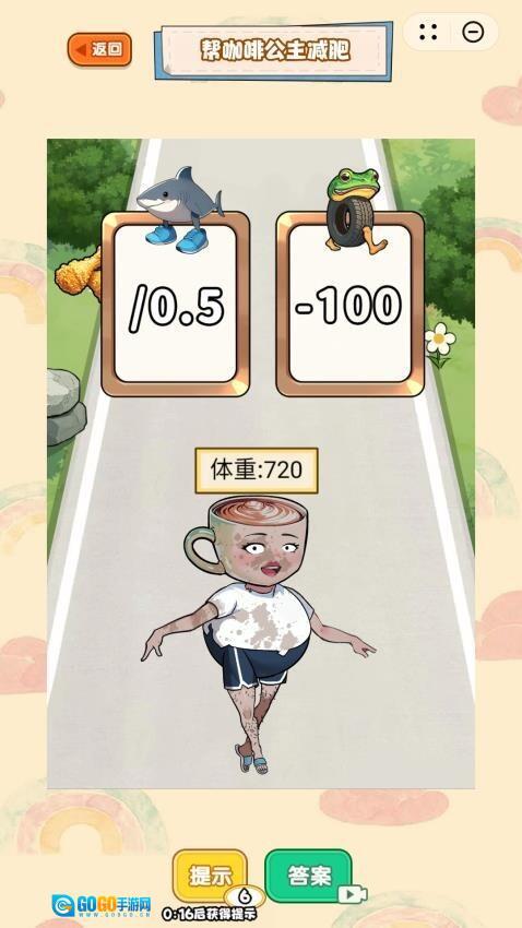 4、成功获得标有“-100”的道具后,能马上减少100单位体重,从而加快通关的速度。