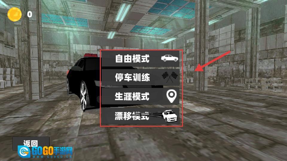 2、在模式选择页,挑【自由模式】练操作,或选【停车训练】【生涯模式】等。