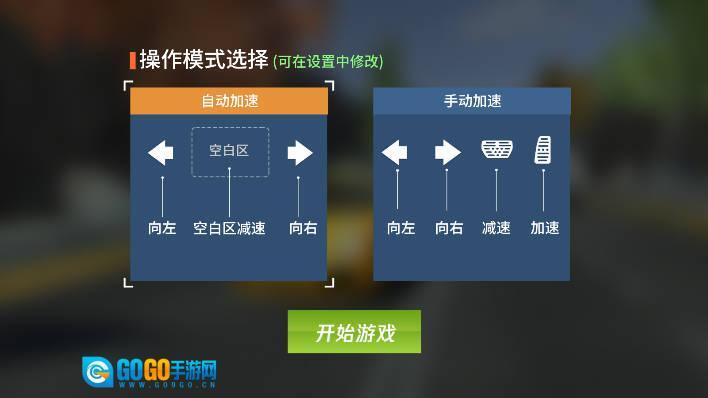 游戏可以选择2种操作模式,第一种为默认的自动加速模式;第二种则为需要进入设置选择的手动加速模式;