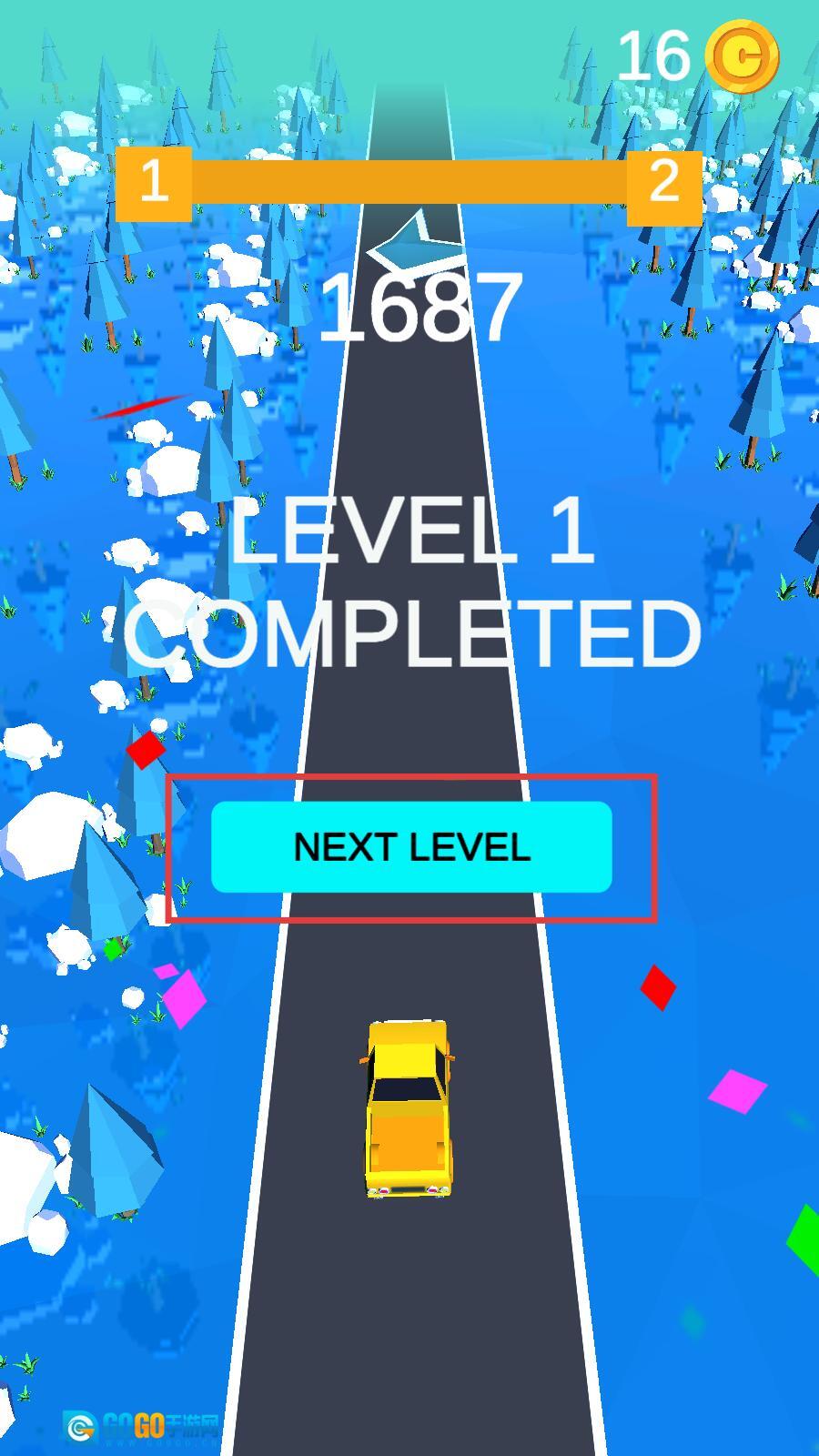 4、第一关完成后,点击【NEXTLEVEL】,开启新关卡挑战,接着在高速路上驰骋吧。