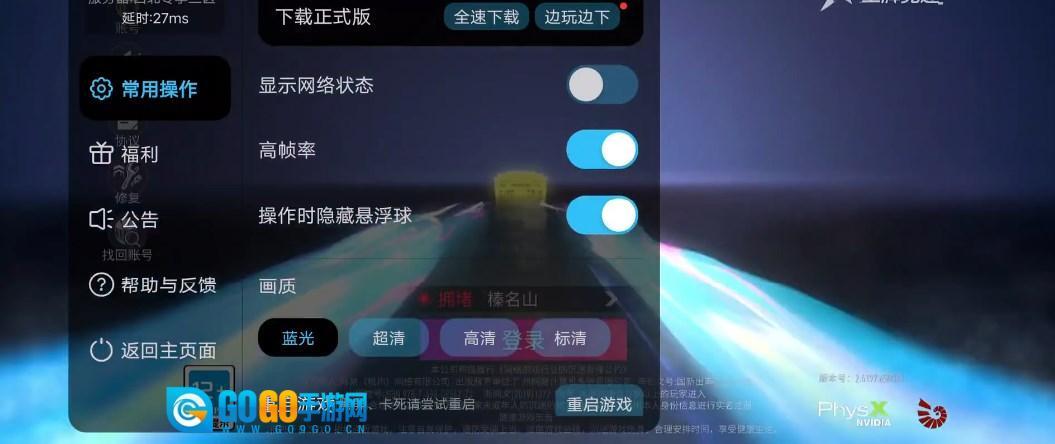 你可以通过点击游戏中的悬浮球,即可设置画质、帧率、网络状态显示等。