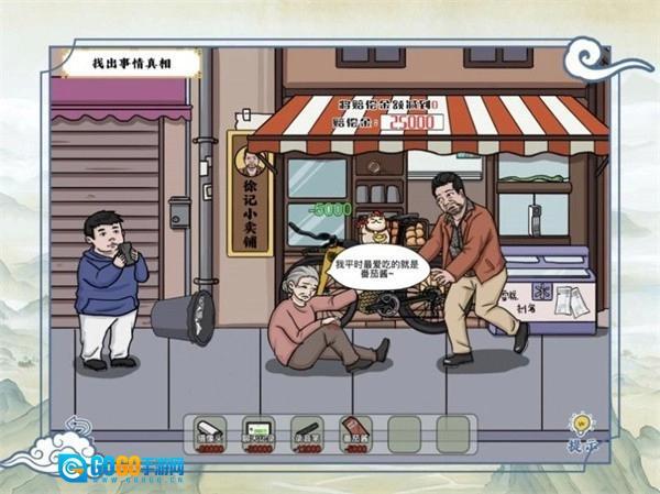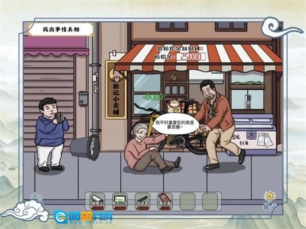 4、在“弘扬正能量帮老奶奶要到赔偿金”这一情境中,正确的操作步骤是:首先点击路人,接着点击路人口袋里的物品。