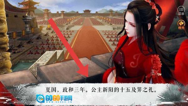3、体验“夏国,政和三年,公主新阳的十五及笄之礼”这段剧情时,按照箭头的指引来触发互动,以此推进与公主及笄相关的情节,进而解锁后续的内容。