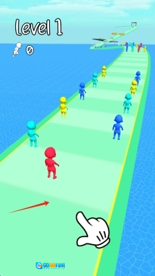 1、进入游戏第一关的启动界面后,按照箭头的指引完成对应操作,即可开启跑酷冒险之旅,通过滑动来启动游戏。