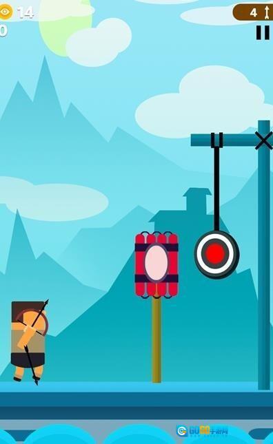 这是一款十分有趣的射击闯关游戏。在游戏里,玩家得操控小人,在限定时间内把箭射向目标,途中还会遇到各类障碍物,玩家需要提前瞄准并计算好抛物线轨迹,最终顺利命中目标。