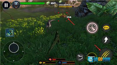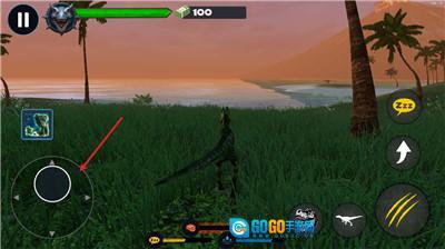 2、玩家可以通过左侧的摇杆来操控恐龙在地图种移动。