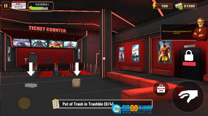 可能会有人想要打扰电影院的安宁!识别并干预吸烟者和秘密录制影片的人。要迅速,否则其他顾客可能会因不满而离开。通过掌掴来维护秩序,确保所有顾客都满意!