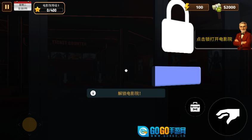 5、首先点击锁打开电影院;