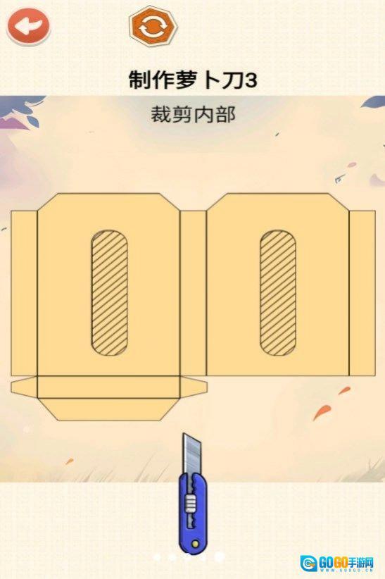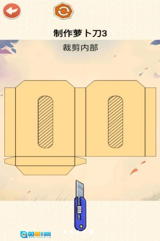 3、玩家需要在游戏板块中挑选萝卜的形状,然后在萝卜上运用虚线指示的线条进行切开。