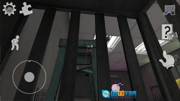 1、来到游戏中,玩家会被关在一个笼子里面,直接晃动一下左侧的凳子。
