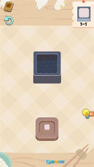 玩家能够先旋转食物块,接着将其翻转,从而使其能恰当地放入盒子里。