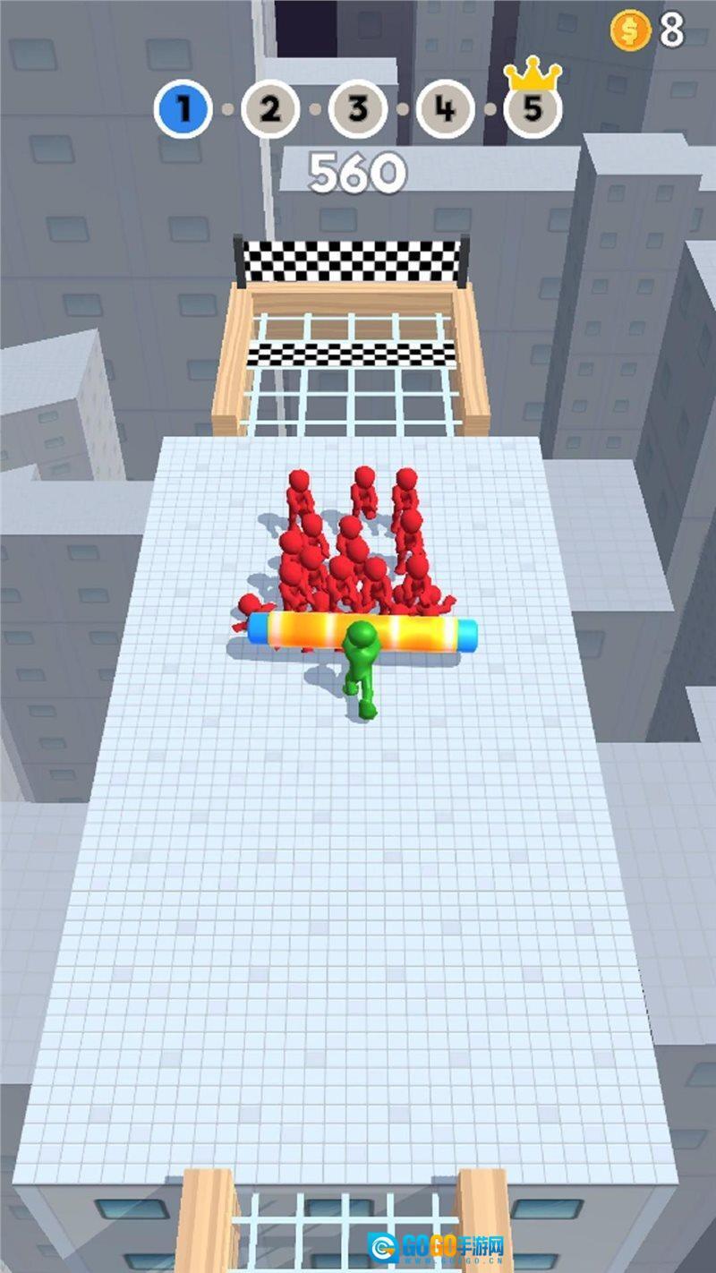 2、掌控一根粗木棍,把其他对手全都推倒,向着终点全力冲刺。