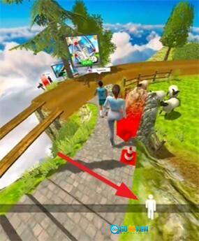 2、接着直接开启跑酷模式,借助下方的人物图标,就能操控角色进行左右移动。