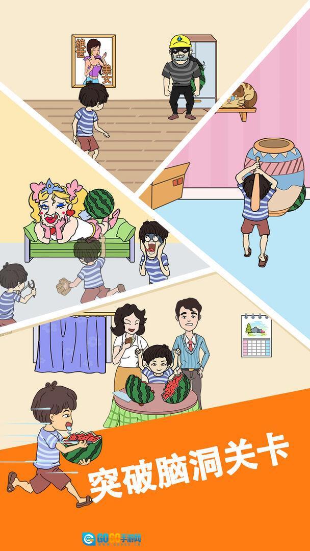要找到西瓜,你得借助各种各样的道具,同时避开陷阱和可怕的邻居,最后用刀切开西瓜就能获胜。