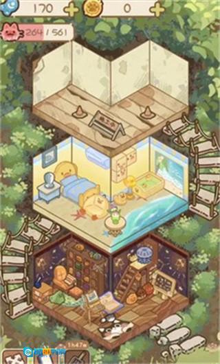 1、自由设计家园打造专属精美书屋环境,画面精美场景可爱,猫咪与家具设计都非常萌趣,带来治愈系视觉享受;