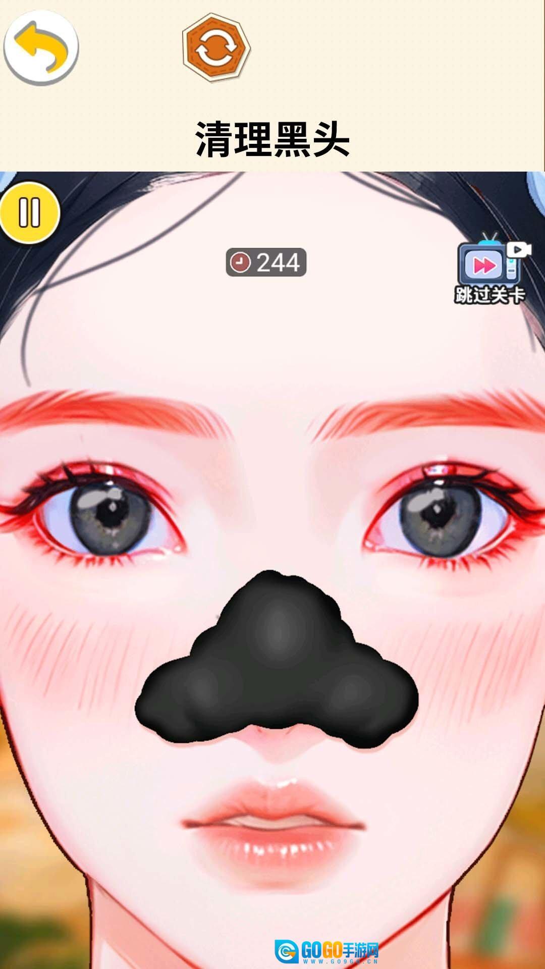 3、每一个关卡都设有时间限制,玩家得在规定的时间里完成黑头清洁与化妆的任务。