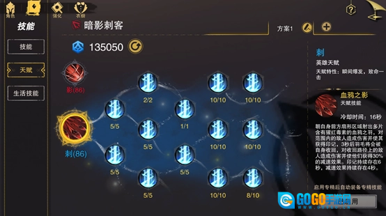 点开技能,进入天赋页面,有两种天赋供勇士们切换,两套技能有不同的侧重点,对职业的成长方向也有一定的影响,就连绝杀技也是两种不同的形式。在仔细地考虑清楚想要往哪个方向养成之后,只需点击启用就可以使用您心仪的这一套技能了哦~