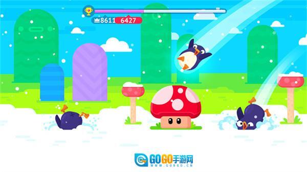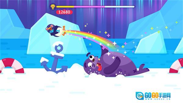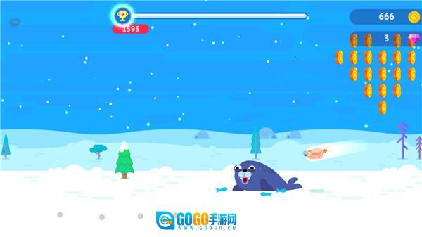 4、当企鹅落到海豹身上的那一刻点击屏幕,海豹就会把企鹅弹出去。