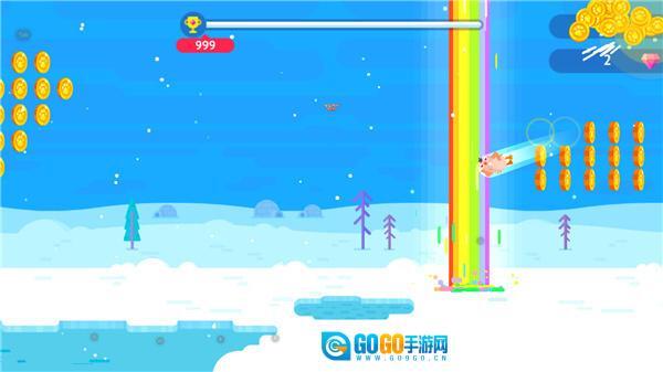 3、企鹅飞行过程中,可以收集金币。