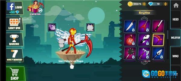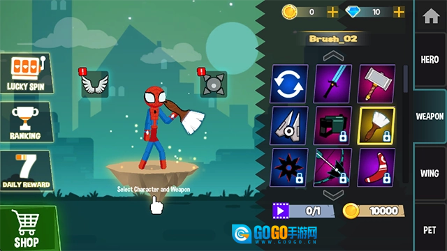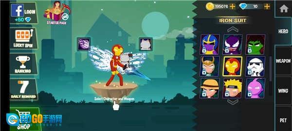 2、选择你的火柴人角色,钢铁侠、鸣人、路飞等等应有尽有;
