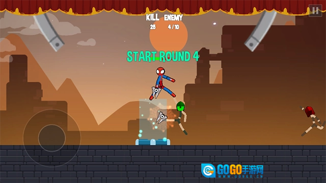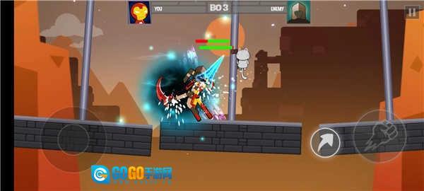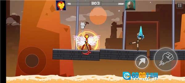 5、触摸屏幕摇杆来控制角色的灵活操作,与其他火柴人对手进行精彩的较量对决;