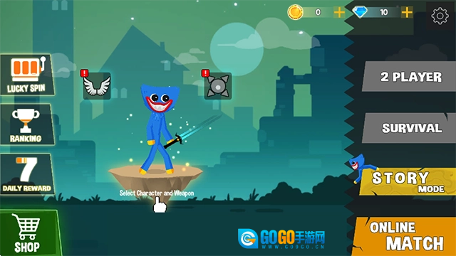 1、进入波比vs火柴人游戏;
