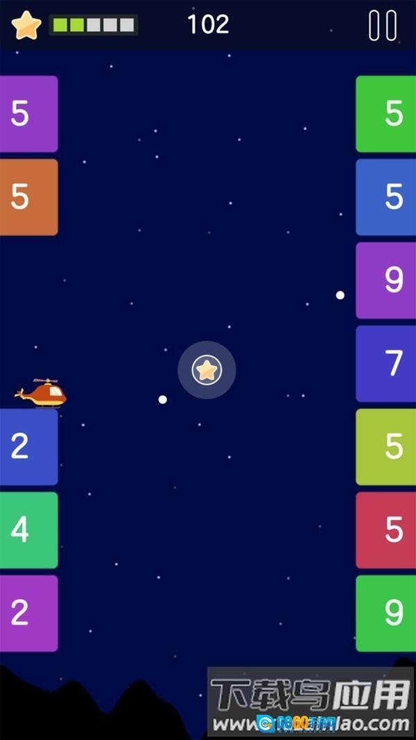 1.轻触屏幕来操控直升机保持平衡飞行,维持合适高度以防发生撞击,尽力延长生存时长;