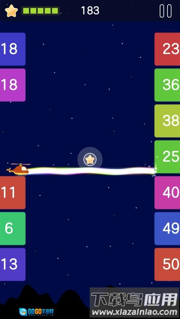 1.点击操控平衡:借助轻点屏幕来调整直升机的飞行高度和平衡状态,防止撞上障碍物,长久存活是核心要点;