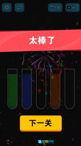 2.你或许只有三四个试管,颜色种类不多,简单几步就能排好顺序,收获一种“整理完成”的初步满足感;