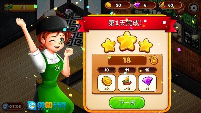 4、当一天的营业落下帷幕,您便顺利完成了第一天的挑战,点击“继续”即可进入下一天的挑战。