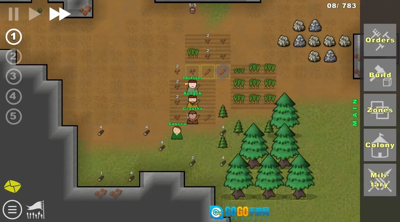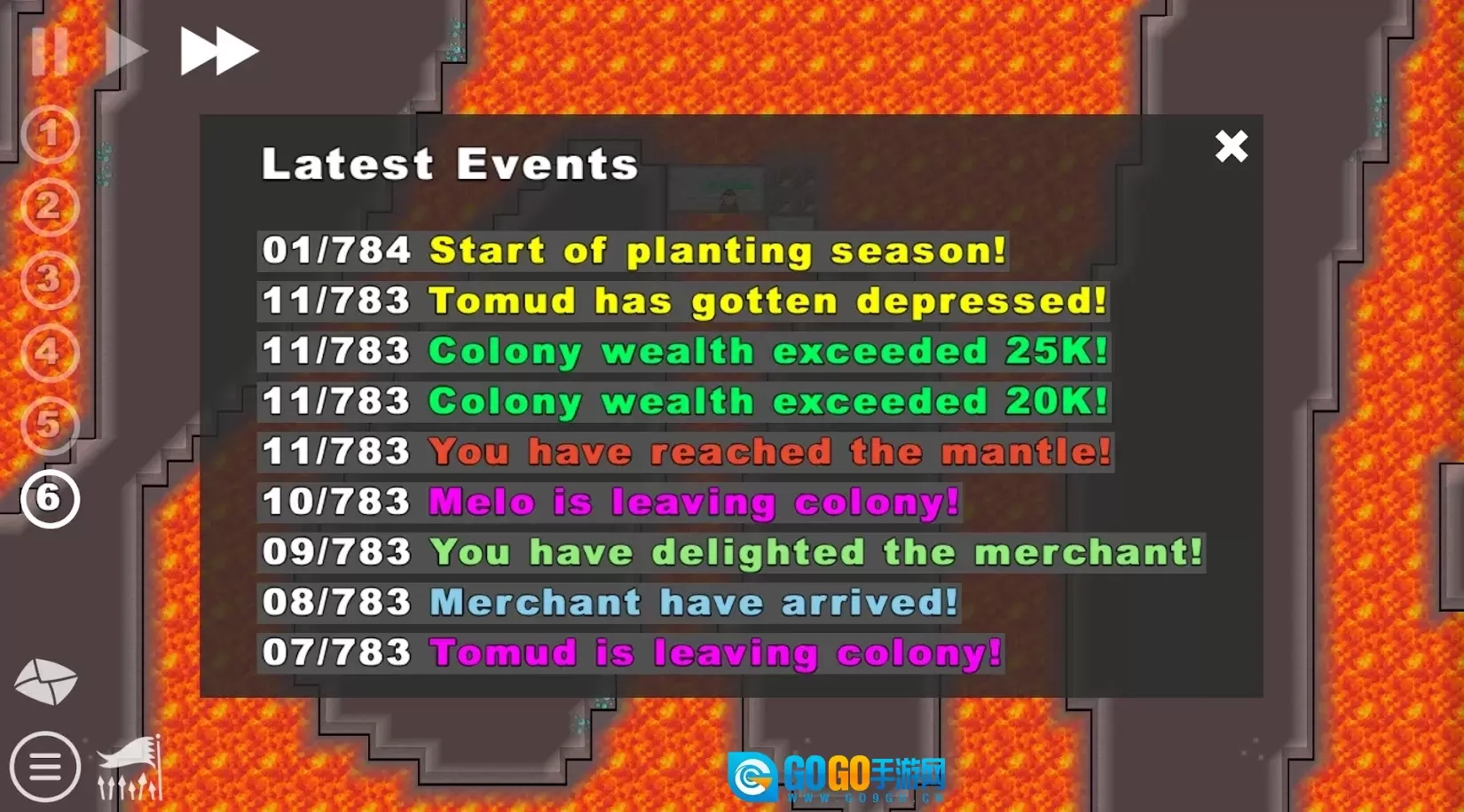 1. 玩家可借助左上方的按钮调整游戏速度。左下方的信封按钮能打开最近事件菜单。双击砧类物品可打开其信息菜单。项目菜单窗口左上区域的按钮会展示物品说明。双击单位即可打开其操作菜单。