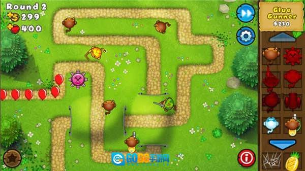 胶水猴子(Glue Gunner)初登场时看似无力,仅凭粘滞拖慢气球步伐,却是后期节奏调控的核心支点。