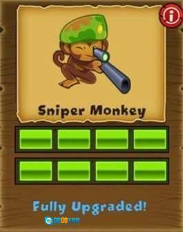 狙击手猴(Sniper Monkey)是全局视野下的冷静猎手,无视距离限制,一击贯穿多层气球。虽出手略缓,但每一发都沉稳有力,尤其适合定点清除高威胁目标。