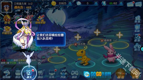2、在游戏里,玩家能够自由召唤古兽、加布兽、暴龙、女神兽、太经典数码兽,每只数码兽都具备独特的技能属性,玩家可以依据不同数码兽的定位和各异的战斗场景,挑选不同的数码兽组合来应对各类战斗。