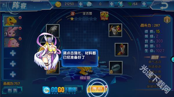 5、当宝石数量充足时,就可以对数码兽进行强化,我们只需点击想要强化的那只数码宝贝即可。