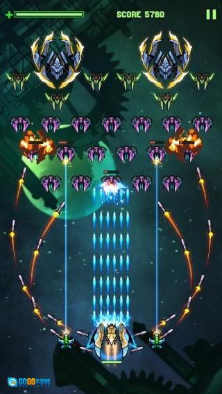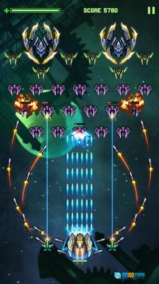 1、玩家能够借助触摸屏幕或是利用虚拟摇杆来操控战机飞行,以此快速避开敌人的弹幕攻击;