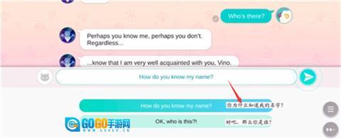 1、进入剧情后,对方先发出“Hello你好”,我们回应“你是谁?”