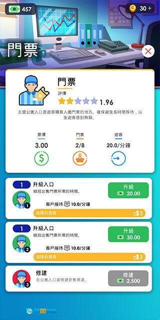 1、化身主题公园大亨,招募新员工,升级游乐设施,把控业务的每个环节。你会投入资金优化公园设施吗?或是提高薪资以维持员工的工作热情?通过做出关键决策,打造出顶尖的主题公园。