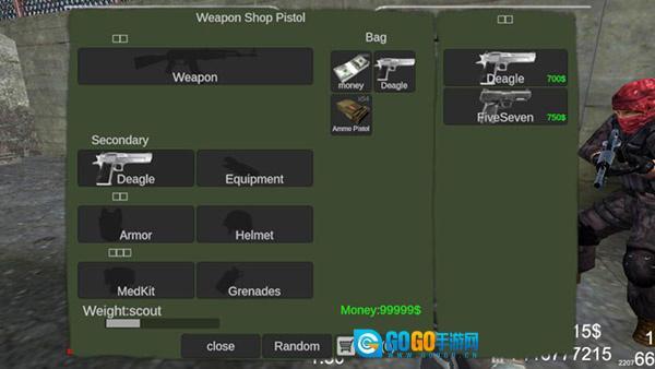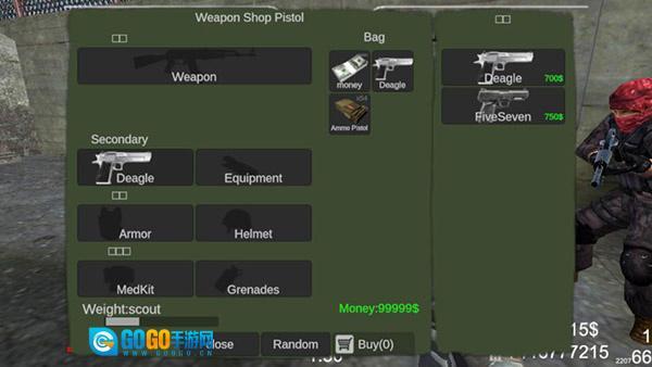 3、点击【背包】后,就能在里面购买所需的枪支和装备。